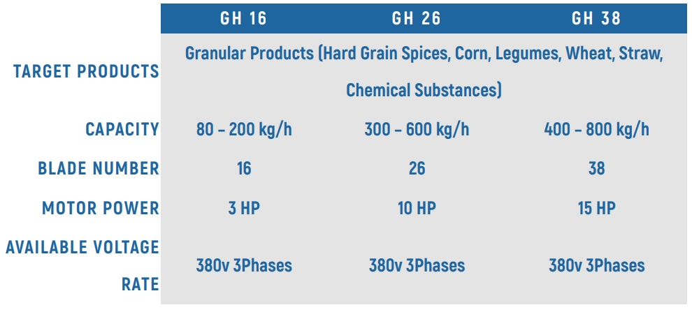 Молотковые мельницы GARANTI – это мельницы промышленного назначения, используемые для измельчения твердых материалов. Целевым продуктом, подлежащим измельчению, являются сухие материалы минимальной крупности. Они измельчаются с помощью лопастей и сит молотковой мельницы. Крупность продукта обеспечивается заменой дополнительных сит, что обеспечивает однородность сыпучего продукта. Быстрая и простая установка и низкие эксплуатационные расходы молотковых мельниц серии GH трех мощностей делают весь процесс простым.